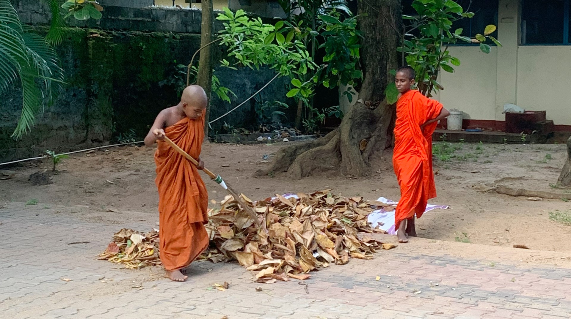 සැදැහැවතුන් පේලියට සිට අතින් අත වැලි ගෙනවුත් මළුව පුරවා තිබේ. පැරැන්නන්ගේ අචල